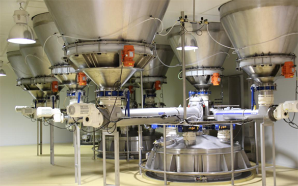 自動化配料系統(tǒng)是一種用于食品生產(chǎn)線,粉體生產(chǎn)線等上自動化的配料系統(tǒng),擅于解決粉體在卸料、粉體輸送、粉體混合、粉體配料過程中的全自動化配料生產(chǎn)。采用可編程控制器(PLC)為核芯,同時控制多臺秤,多種不同物料或控制輸出(根據(jù)工藝而定),智能化控制配料時間,配料各秤之間無任何等待,使得配料周期縮短,提高配料速度和產(chǎn)量。優(yōu)康恩科技的自動化配料系統(tǒng)可根據(jù)多種原材料嚴(yán)格按照一定的科學(xué)配比,進(jìn)行全自動化的、實(shí)時的、高精度的送料、化料、出料的控制裝置以滿足多品項(xiàng)配料乳制品的生產(chǎn)。 并且優(yōu)康恩科技的自動化配料系統(tǒng)可通過配料系統(tǒng)和防錯系統(tǒng)等方面技術(shù)升級,使配料系統(tǒng)能對市場需求變化做出快速適應(yīng),同時消除冗余設(shè)備,使企業(yè)獲得更大經(jīng)濟(jì)效益。