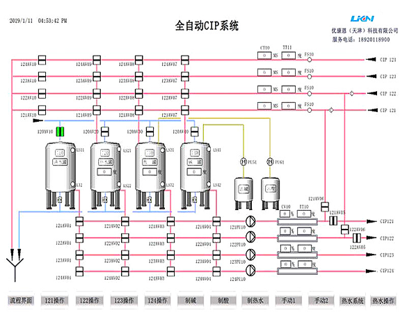優(yōu)康恩可根據(jù)客戶要求、產(chǎn)品特性,為客戶量身定做CIP 清洗系統(tǒng),同時配 置不同的清洗程序步驟和清洗參數(shù)及組合清洗程序。